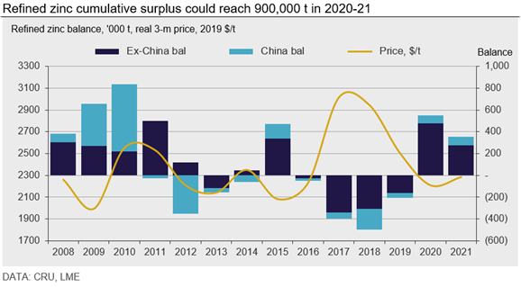 CRU: Refined Zinc Surplus to Swell to 900,000 Tons in 2020-21