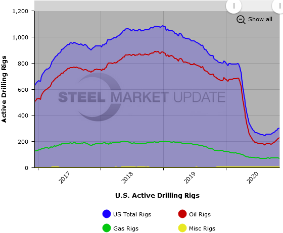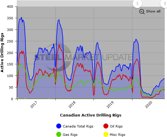 The active U.S and Canadian drill rigs count continues to inch upwards, according to updated data released by oilfield services company Baker Hughes. The active drill rigs count is important to the steel industry because it is a leading indicator of oil country tubular goods demand.