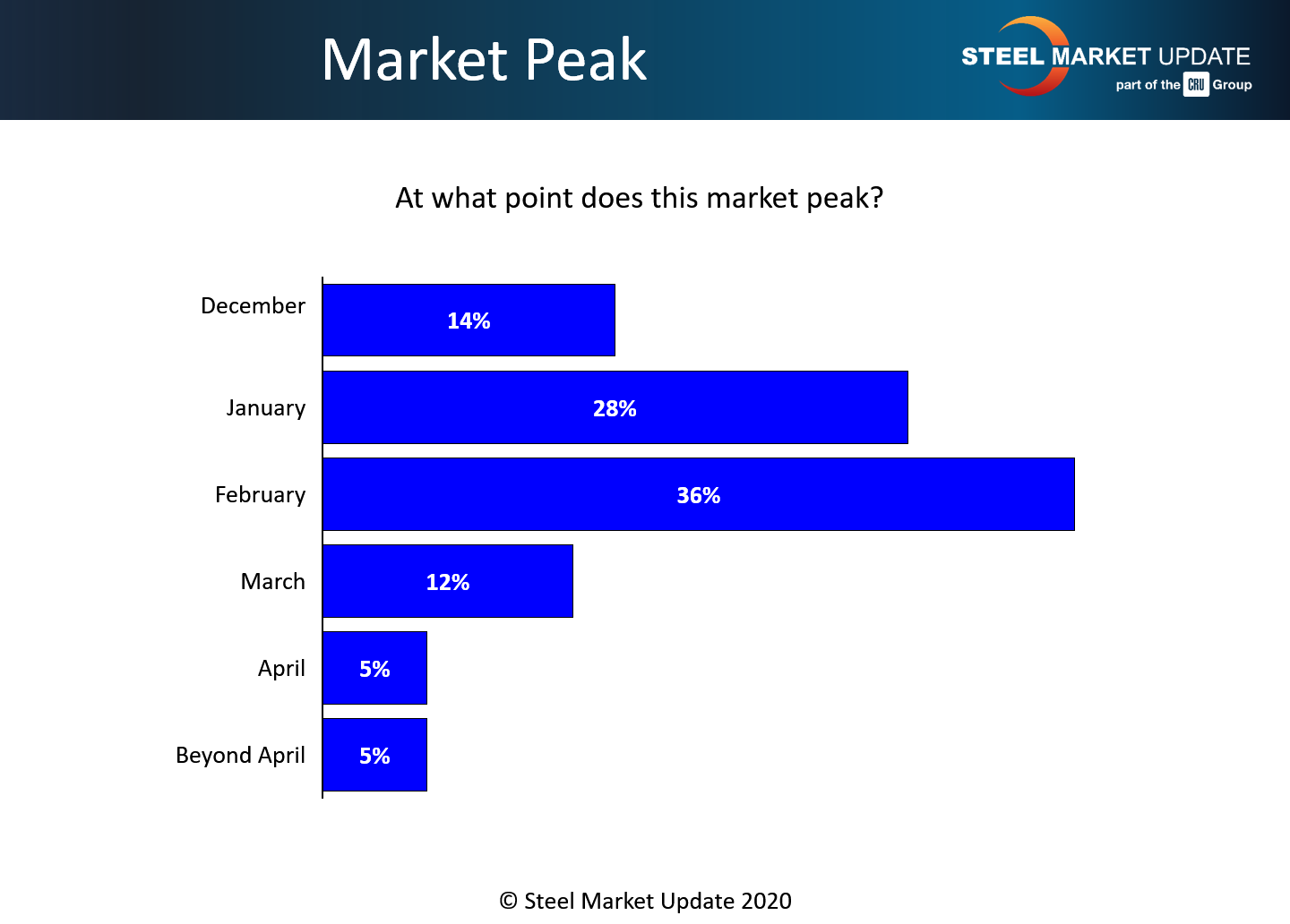 About 62 percent of respondents believe there will be a shortage of supply in the next few months. “We are already there on Galvalume, pretty close on galvanized. I do not think we will see it on hot roll unless the energy markets return with a vengeance, which is highly unlikely in a Biden administration,” commented one respondent. “Mills have already allocated for the December order books. Most new contracts do not have a plus/minus variance in tons now,” said another. “Contract tons will be very tightly managed in 2021,” added one exec.