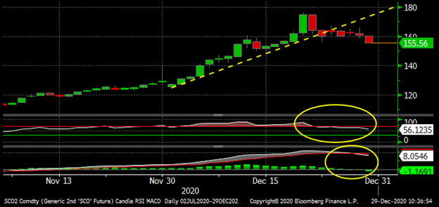 Technically, further signs of a breakdown than the change in momentum in the MACD’s of the CME Midwest HRC and busheling futures is needed, but this development is no doubt a shot across the bow, especially if Chinese ferrous markets continue to deteriorate.