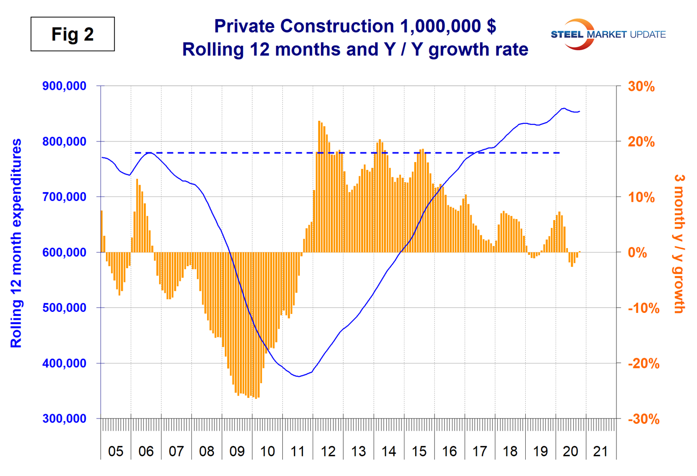 Steel Market Update analyzes Construction Put In Place (CPIP) data to provide a detailed description of activity that accounts for about 45 percent of total U.S. steel consumption. See the end of this report for a description of how we perform this analysis and structure the data.