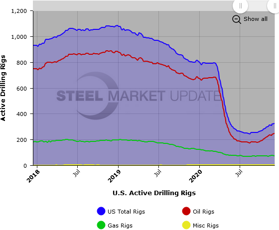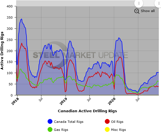 U.S and Canadian active rotary drill rig counts were steady to up this week, according to updated data released by oilfield services company Baker Hughes. The rig count is important to the steel industry because it is a leading indicator of oil country tubular goods demand.