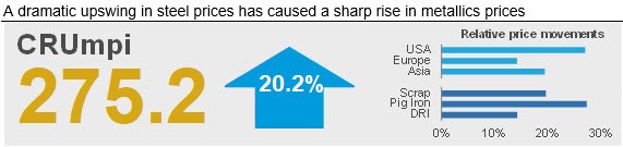 CRU: Steel Price Surge Causes Global Metallics Prices to Spike