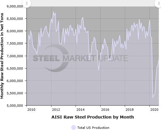 AISI’s monthly raw steel production estimates are different than the weekly estimates SMU reports each Tuesday; the monthly estimates are based on over 75 percent of the domestic mills reporting versus only 50 percent reporting for the weekly estimates.