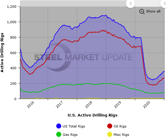 U.S and Canadian active rotary drill rig counts increased this week, according to data released by oilfield services company Baker Hughes. The rig count is important to the steel industry because it is a leading indicator of oil country tubular goods demand.