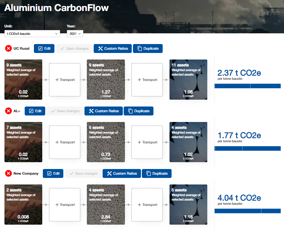 Figure 1: Aluminum CarbonFlow for Rusal, Al+ and the new company (Click to enlarge)