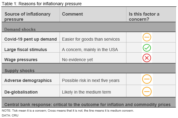 This increase in breakeven rates is symptomatic of a broader concern amongst many economists and analysts in financial markets. There are a number of reasons why inflation could rise, covering both demand and supply factors (Table 1).