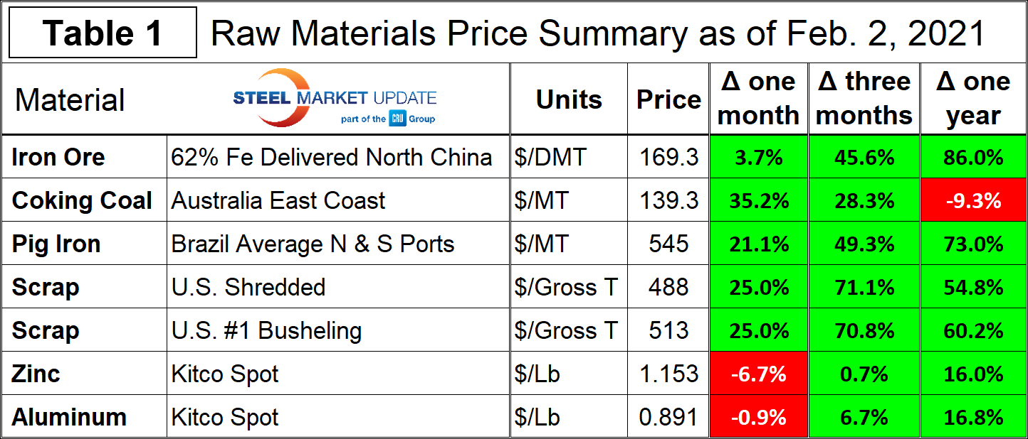 Raw Materials Prices: Iron Ore, Coking Coal, Pig Iron, Scrap, Zinc