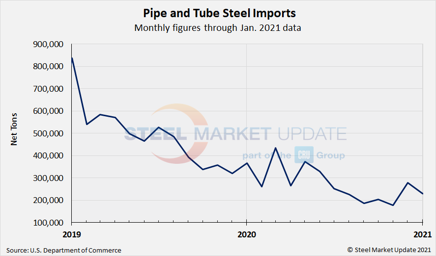 The average monthly import level for 2020 is now finalized at 1.84 million tons, down 21% from the 2019 monthly average of 2.32 million tons, and down 35% from the 2018 monthly average of 2.81 million tons.