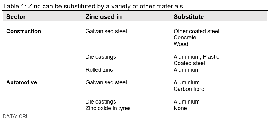 CRU: Zinc’s Price is Not Far from the Substitution Danger Zone