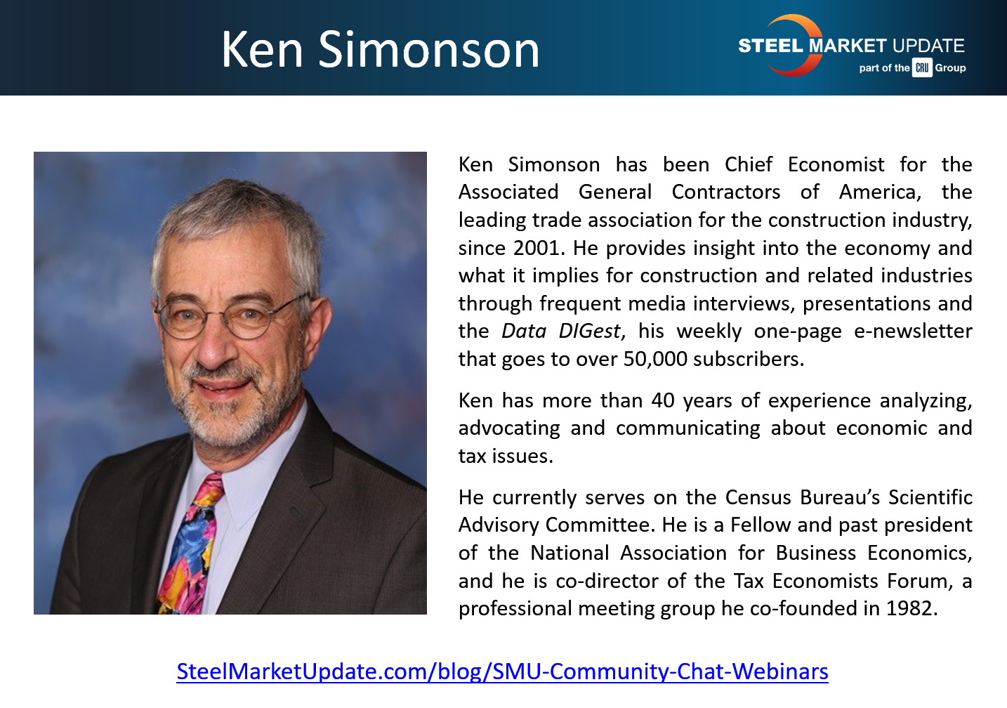 Ken Simonson, chief economist at the Associated General Contractors of America, will be the featured speaker at the next SMU Community Chat beginning at 11 a.m. ET on Wednesday, March 31.