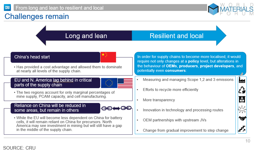 There are a large number of small steps that can be made by governments, OEMS and materials producers themselves, which could come together to enable the development of more resilient and local supply changes outside China in the future.