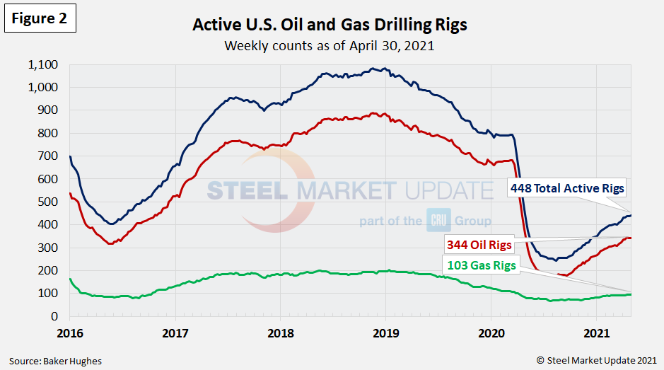 Trends in energy prices and rig counts are a predictor of demand for oil country tubular products (OCTG), line pipe and other steel products.