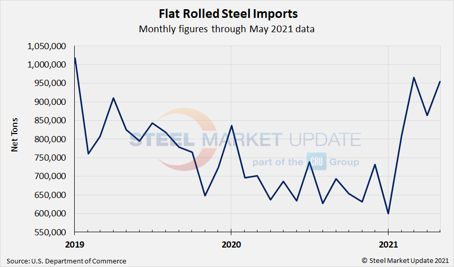 Preliminary Census data shows that total foreign steel imports rose 14% from March to April, up to 2.64 million tons, as U.S. buyers sought relief from climbing domestic prices and limited supplies. This is the highest total monthly import level seen since July 2020 when imports were 2.71 million tons.