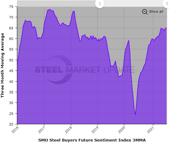 Click here to view an interactive graphic of the SMU Steel Buyers Sentiment Index or the SMU Future Steel Buyers Sentiment Index.