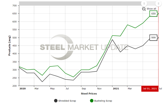 Domestic demand for scrap remains very strong, especially in the U.S. Midwest, though transportation issues making it difficult to secure trucks and railcars are really hurting scrap dealers who still have to deliver many of their July orders. “It does not look like those bottlenecks are going to get better any time soon [limiting supplies], and that is another stabilizing force for U.S. scrap prices as we get further into August,” he added.