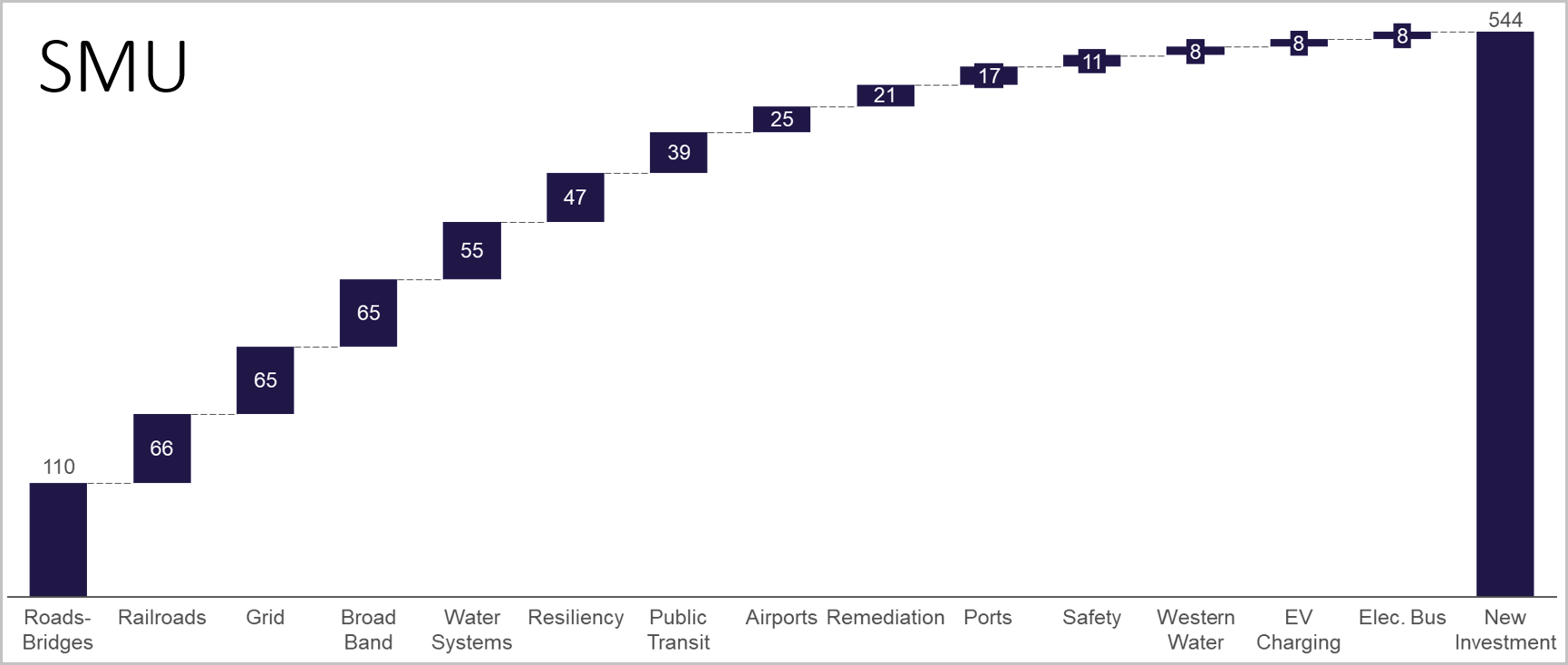 The $1.2 trillion infrastructure bill promises to deliver about $550 million in actual new investment. The breakdown of that investment looks as follow.