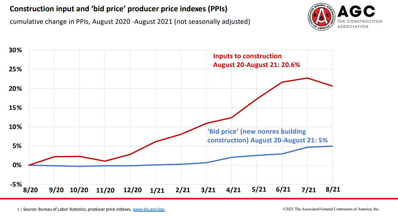 In addition to increases in materials costs, transportation and fuel costs also spiked. The index for truck transportation of freight jumped 14.1%. Fuel costs, which contractors pay directly to operate their own trucks and off-road equipment, as well as through surcharges on freight deliveries, also jumped.