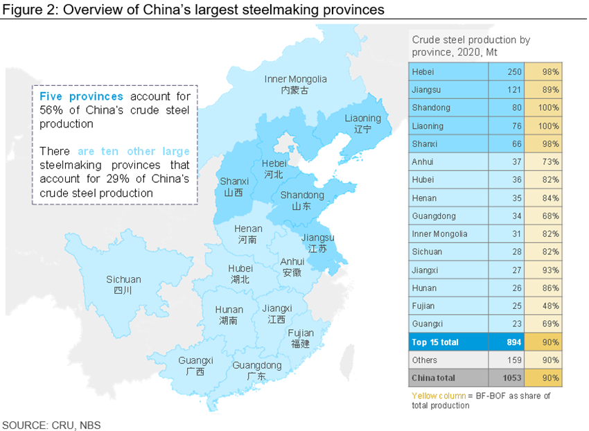 - The nationwide 2021 production cuts (now-end 2021) were first announced by the Ministry of Industry and Information Technology at end-2020 as part of China’s new decarbonization policy. But actually, this target was only brought into focus in mid-June this year, which is one reason Chinese crude steel production increased enough to reach new record levels in Q2. Provincial governments started to outline detailed implementation plans following Beijing’s order, to ensure that crude steel production in H2 would be lower than in the second half of 2020.