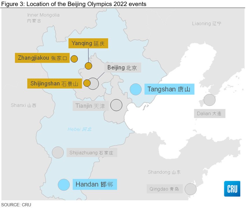 The 2022 Winter Olympics Games in Beijing are expected to take place in three regions, Shijingshan and Yanqing Districts in Beijing and Zhangjiakou District in Hebei Province. While we do not expect steel demand to be significantly reduced as most construction works have already been finished, the local government of Hebei has required local industrial plants to cut output in order to ensure air quality during the global event.