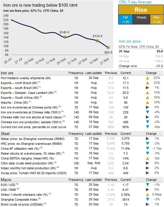 CRU: Iron Ore Falls Below $100/dmt as Supply Improves