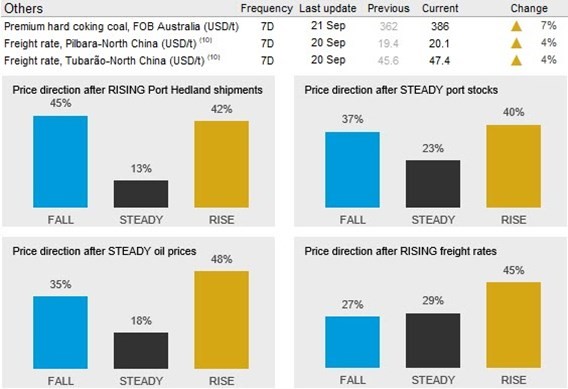 As demand for iron ore has continued to weaken, supply has improved in the past week and global exports have come in at the highest level since the first week of January. Seaborne supply is much higher than in the past few weeks and is also much higher than at the same time last year. The coking coal price in China and on the seaborne market continues to rise and we see continued pressure on both low-grade iron ore and lump, both reaching the lowest level in years. Some low-grade producers in the market are already losing money on their shipments due to the falling prices in combination with the rising freight rates. Our sources have also indicated that several traders in China have gone out of business after having been caught on the wrong side of the market during this steady price fall.