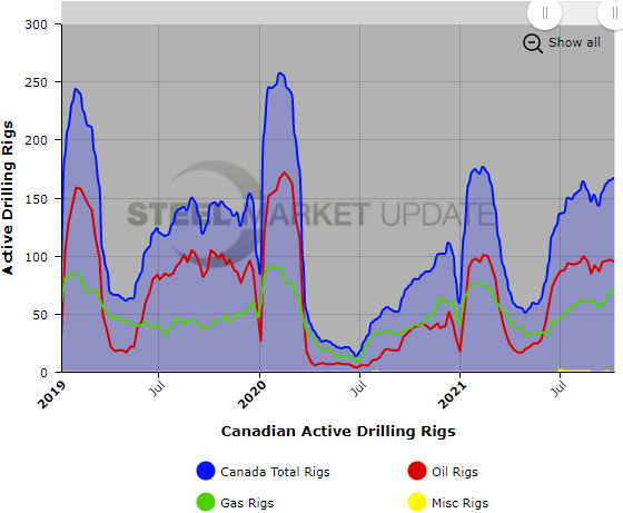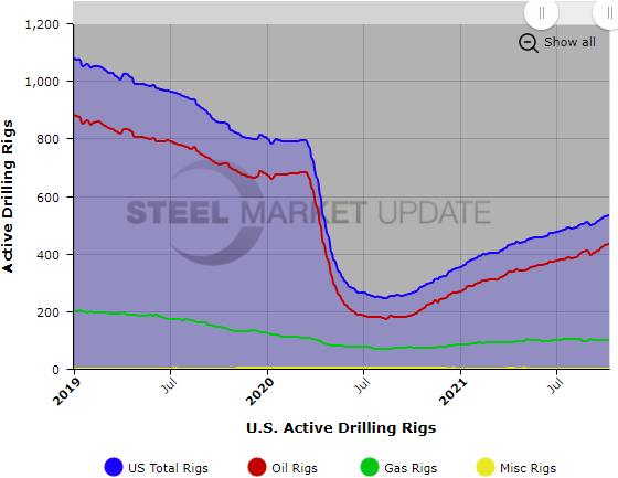 For more in-depth information on the energy market, Steel Market Update publishes an “Energy Update” report each month covering oil and natural gas prices, detailed rig count data, and oil stock levels. Our most recent report was published on Sept. 10 for Premium members; our next report will be published later this week.
