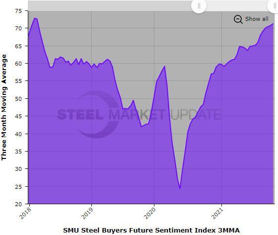 Click here to view an interactive graphic of the SMU Steel Buyers Sentiment Index or the SMU Future Steel Buyers Sentiment Index.