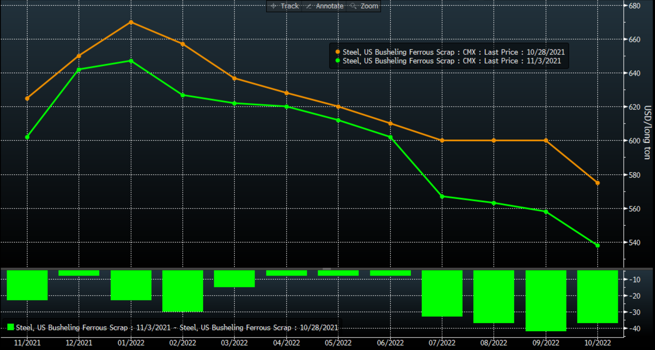 Back here in the U.S., the scrap curves moved lower week over week, but we are moving into a seasonal period where scrap pricing usually firms up, so we will see if this weakness lasts.