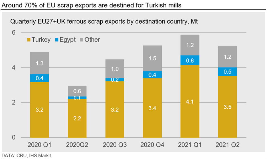 Other major export destinations for European scrap include Egypt, the USA, Switzerland and Pakistan.