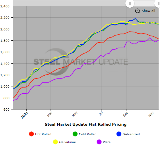 SMU Note: Below is a graphic showing our hot rolled, cold rolled, galvanized, Galvalume, and plate price history. This data is available here on our website with our interactive pricing tool. If you need help navigating the website or need to know your login information, contact us at info@SteelMarketUpdate.com.