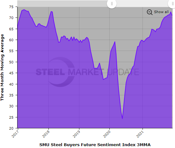 Click here to view an interactive graphic of the SMU Steel Buyers Sentiment Index or the SMU Future Steel Buyers Sentiment Index.