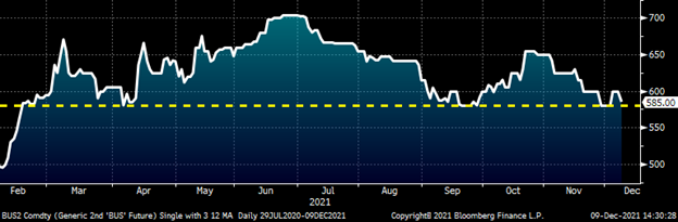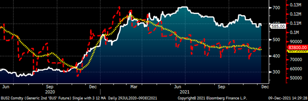 December’s busheling settlement will be out within the next 24 hours. Earlier this month, expectations were for prime to gain $20, but those expectations have slowly receded with December’s settlement now expected to be about flat MoM. Open interest in busheling has steadily declined throughout the year.