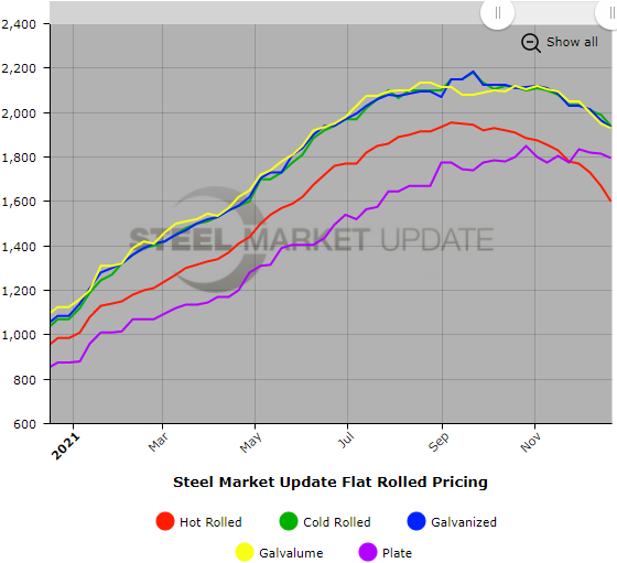 SMU Note: Below is a graphic showing our hot rolled, cold rolled, galvanized, Galvalume, and plate price history. This data is available here on our website with our interactive pricing tool. If you need help navigating the website or need to know your login information, contact us at info@SteelMarketUpdate.com.