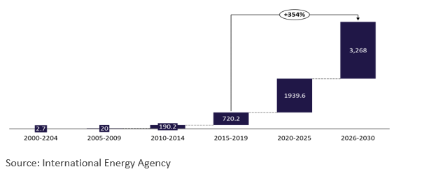 It bases this projection on what it calls its “Sustainable Development Scenario,” which forecasts annual growth of 15% for the decade. This estimate is very conservative based upon trailing performance over the past five years, when installations rose an average of 31%.