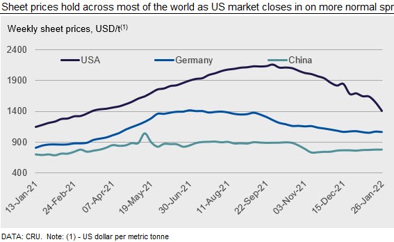 CRU: U.S. Sheet Prices Plummet Back Towards Global Average