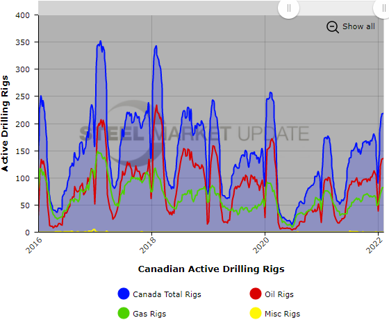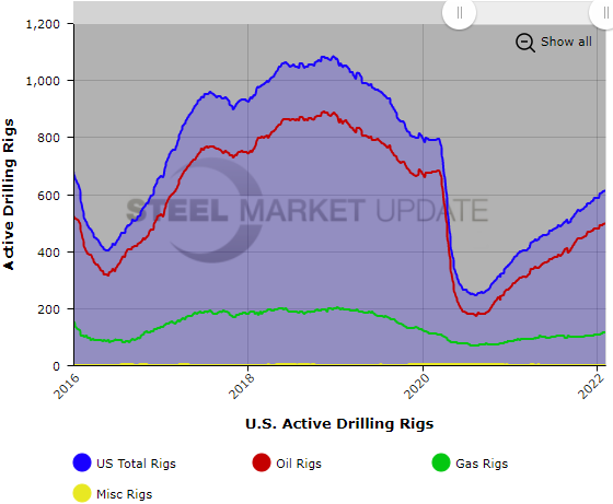 For more in-depth information on the energy market, Steel Market Update publishes an “Energy Update” report each month covering oil and natural gas prices, detailed rig count data, and oil stock levels. Our most recent report was published on Jan. 17 for Premium members.