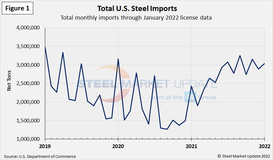 We have an interactive graphing tool available on our website here where readers can further investigate historical import data, in total and by product. If you need assistance logging into or navigating the website, contact us at Info@SteelMarketUpdate.com.