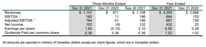 The steel distributor’s earnings for the fourth quarter totaled $102 million (U.S. $80 million) on sales of $671 million (U.S. $527 million), a big rebound from a small loss in the prior-year quarter.
