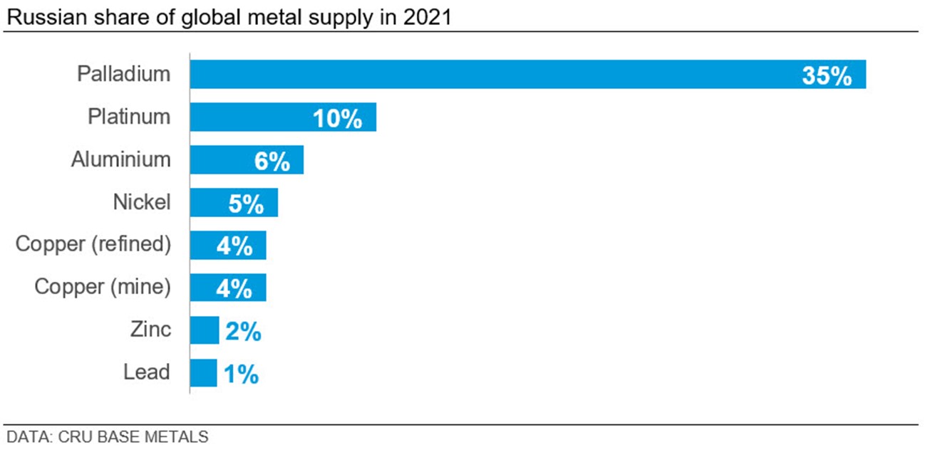 To limit disruptions to manufacturing, it is highly likely that any existing contracts would sit outside initial sanctions. There will still be risk with this as the Russian company may not want to supply if accessing the cash payment is burdensome or risky. Last time around, lawmakers initially underestimated the impact of sanctions on UC Rusal; it was only after substantial lobbying that rules were tweaked. Today, metal inventories are so low that the impact on commodity metals prices could be explosive.