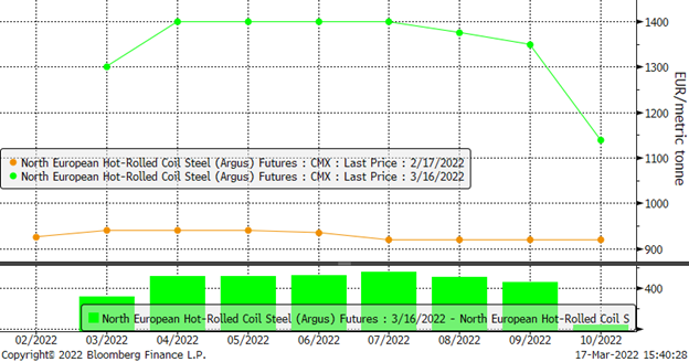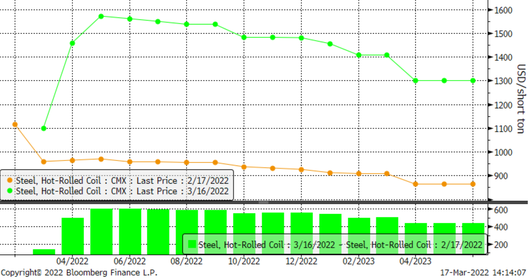 Exactly three weeks ago today, I wrote the HRC futures article entitled, “Opposing Forces” on day one of Russia’s invasion of Ukraine. Metal Edge Partners was fortunate to have been briefed by our Washington, D.C., contacts well in advance of the invasion of the potential risks of Russian aggression on the world order. Unfortunately, the devastation in Ukraine and the impact on the Ukrainian people over these long three weeks has exceeded most of our expectations. But their bravery and resolve have provided inspiration to the rest of the freedom-loving world.
