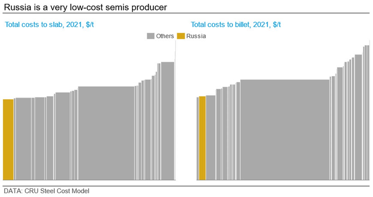A further point to note is that Russia is one of the lowest-cost suppliers in the world across multiple steel products. This will play into the likelihood that any alternate sourcing options may be more expensive.