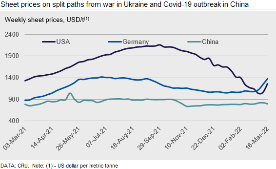 CRU: War in Ukraine and Covid Create Divergent Sheet Price Paths