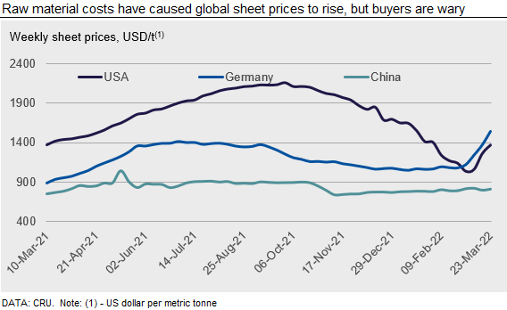 CRU: Raw Material Price Increases Cause Global Sheet Price Hike