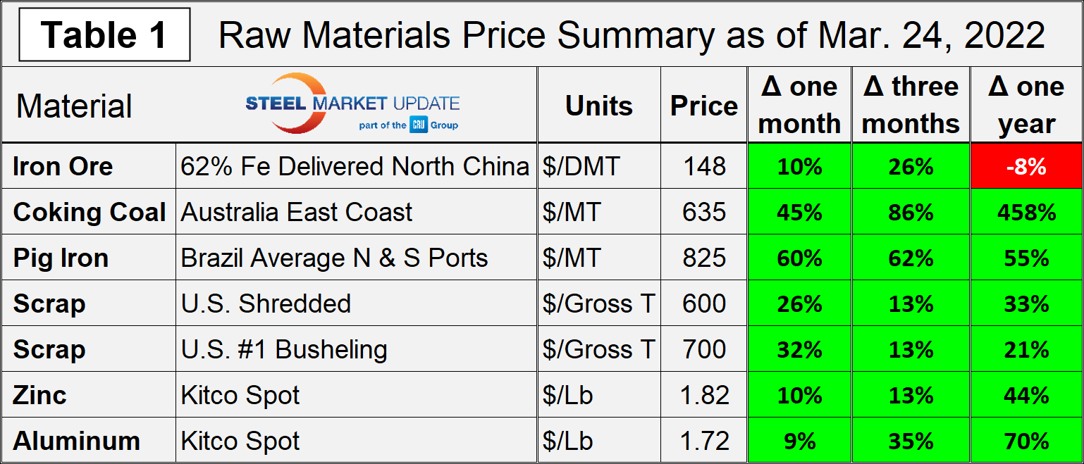 Raw Materials Prices: Surges in Iron Ore, Coking Coal, Pig Iron, Scrap, Zinc