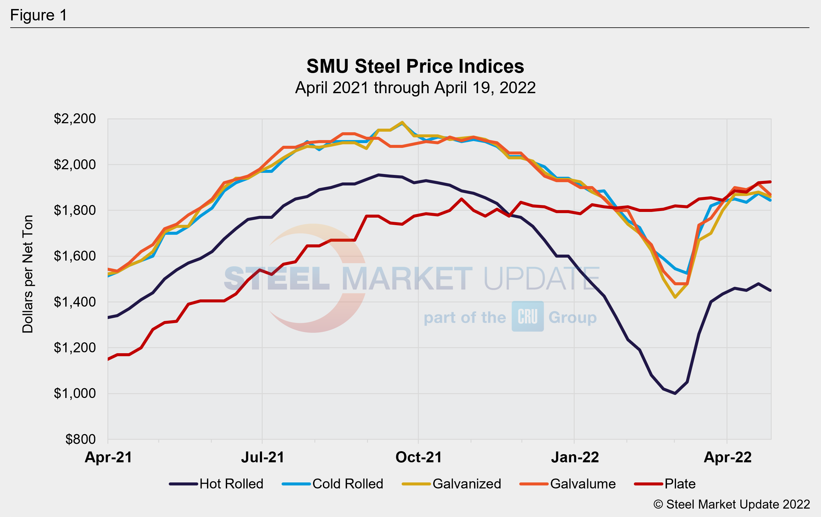 SMU Note: Below is a graphic showing our hot rolled, cold rolled, galvanized, Galvalume, and plate price history. This data is available here on our website with our interactive pricing tool. If you need help navigating the website or need to know your login information, contact us at info@SteelMarketUpdate.com.