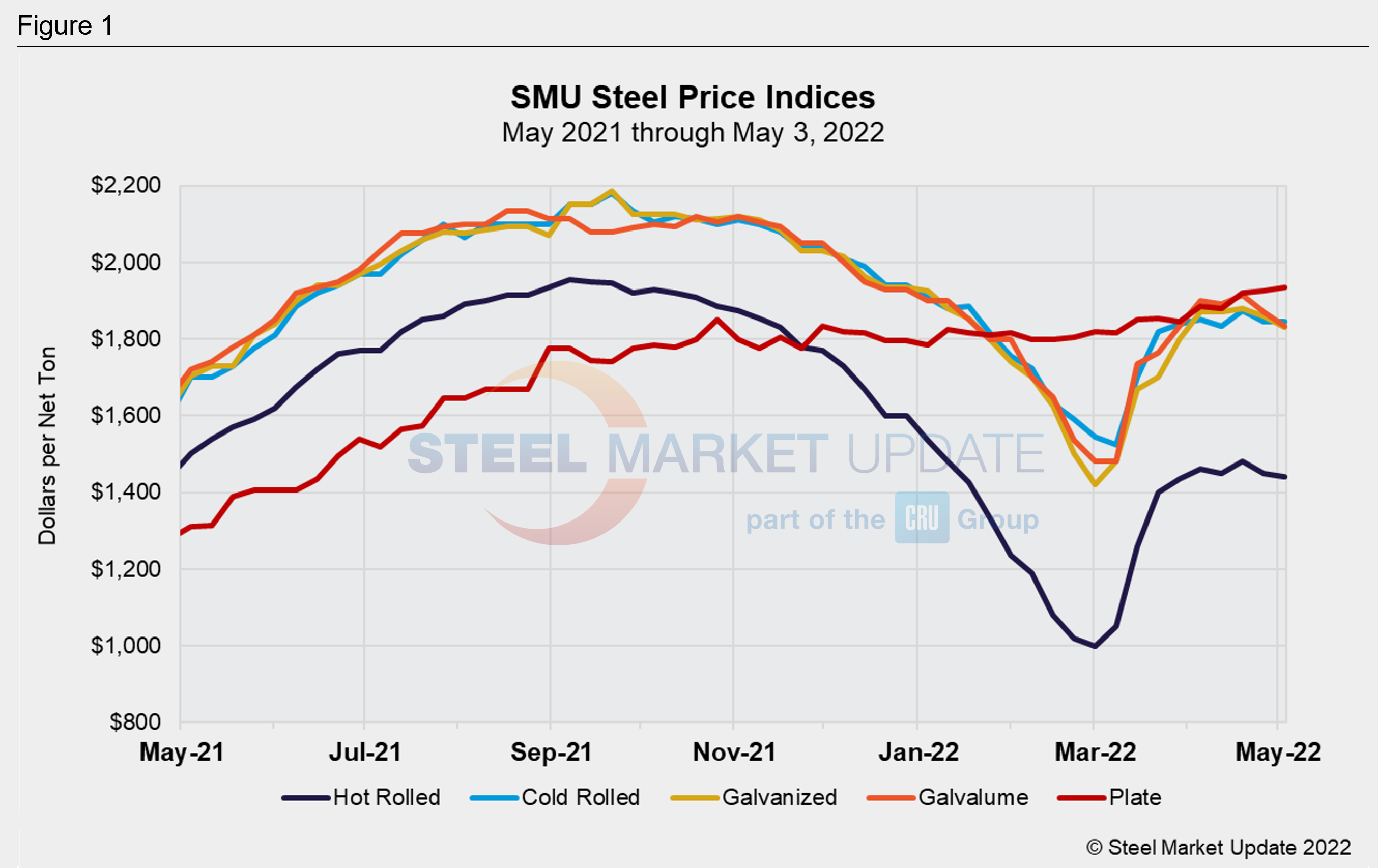 SMU Note: Below is a graphic showing our hot rolled, cold rolled, galvanized, Galvalume, and plate price history. This data is available here on our website with our interactive pricing tool. If you need help navigating the website or need to know your login information, contact us at info@SteelMarketUpdate.com.
