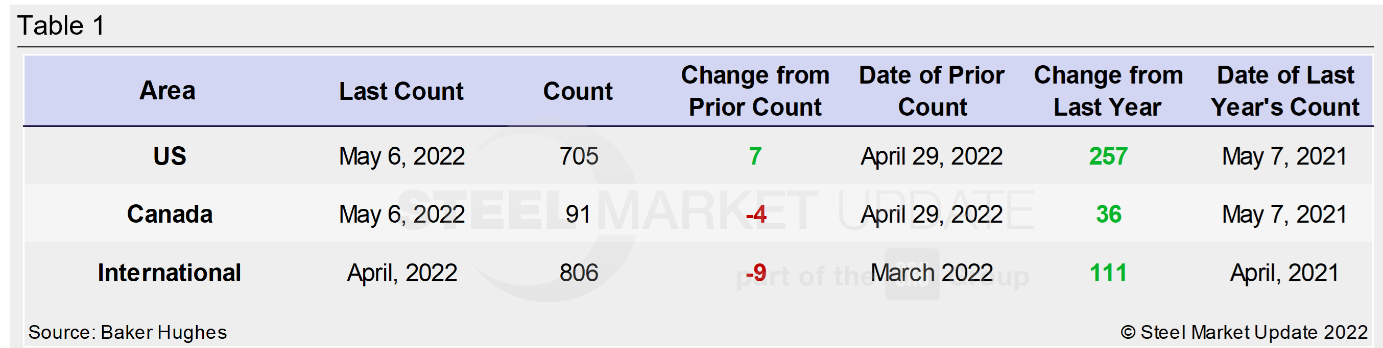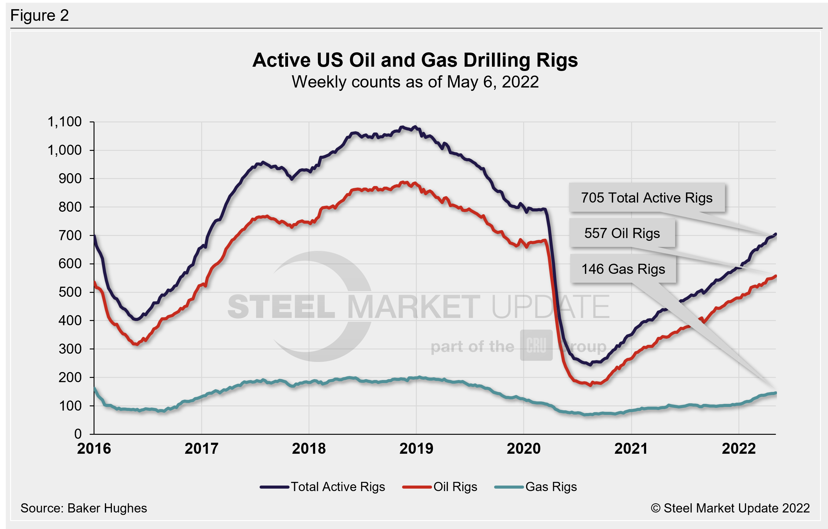 Trends in energy prices and rig counts are a predictor of demand for oil country tubular goods (OCTG), line pipe and other steel products.