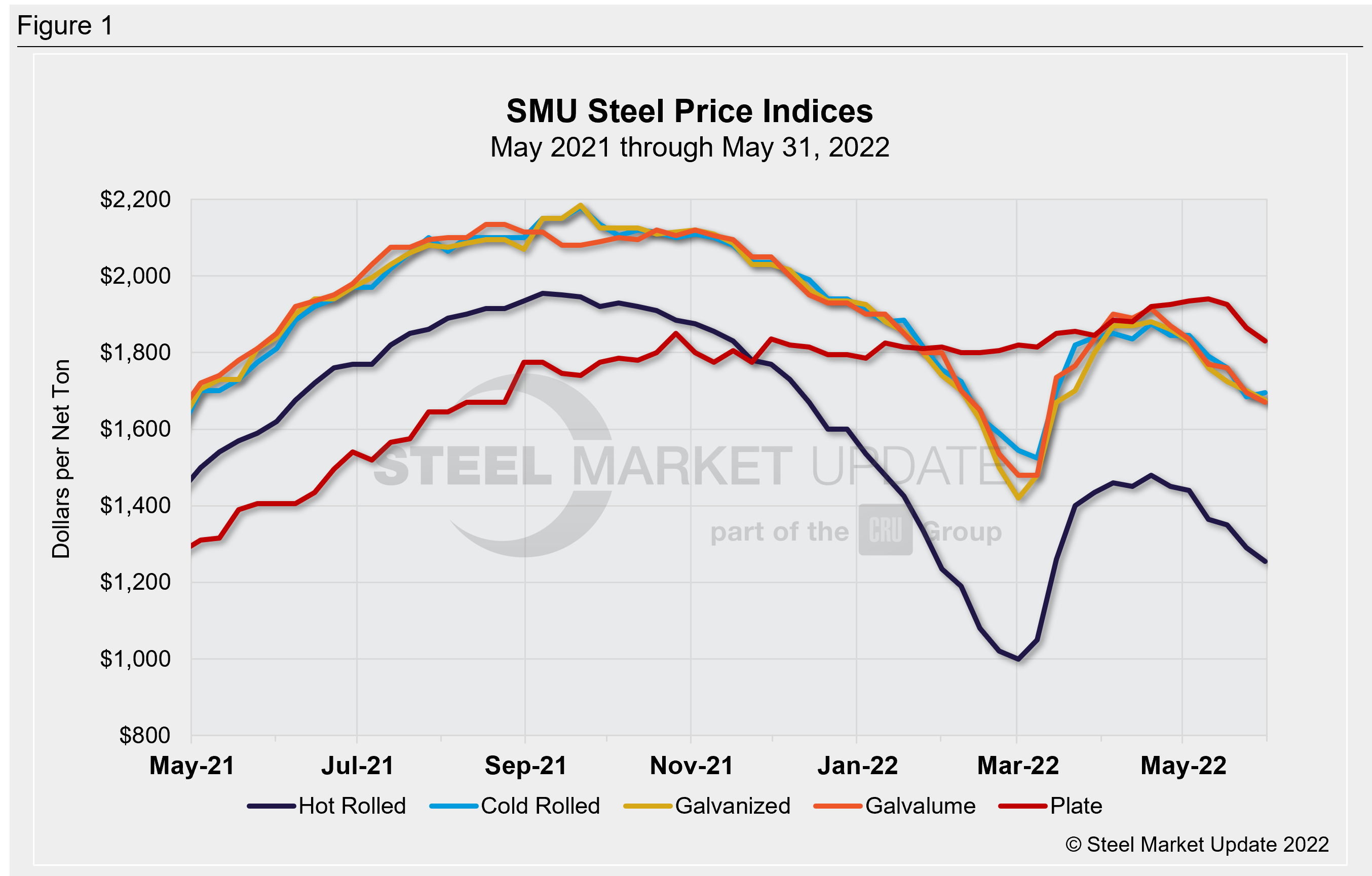 SMU Note: Below is a graphic showing our hot rolled, cold rolled, galvanized, Galvalume, and plate price history. This data is available here on our website with our interactive pricing tool. If you need help navigating the website or need to know your login information, contact us at info@SteelMarketUpdate.com.