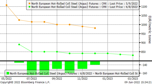 US futures have also experienced a meaningful downward correction into Q1 ’23 as compared to the early May timeframe, with prices into 2023 averaging in the mid $900s per ton.